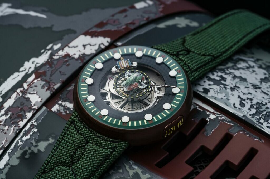 Kross Studio fabricante y estudio de diseño suizo lanza el reloj de coleccionistas inspirado en Boba Fett en colaboración con Lucasfilm. Pero es mucho más que dar el tiempo. Cada uno de los 10 conjuntos de edición limitada incluye un reloj Tourbillon central numerado y de cuerda manual inspirado en Boba Fett y una pantalla de reloj de EFX, inspirada en la famosa nave estelar de Boba Fett. .